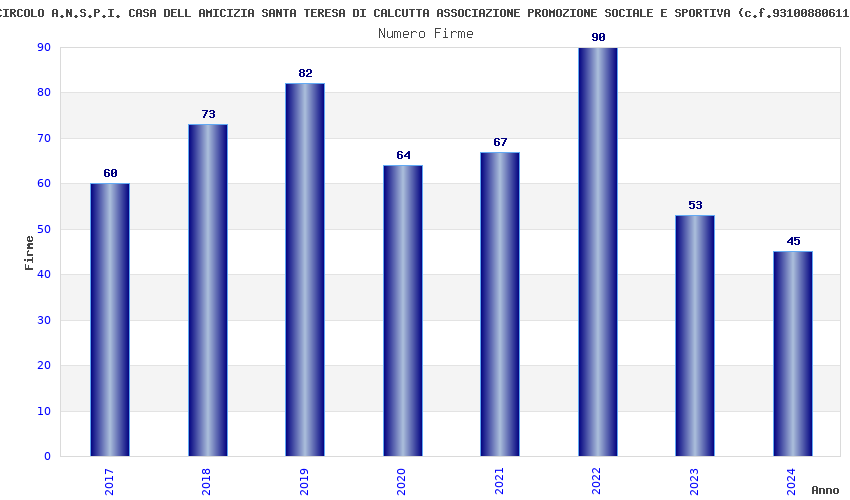 | Anno | Firme | Importi | Media | Naz. | Reg. | Prov. | Comu. |