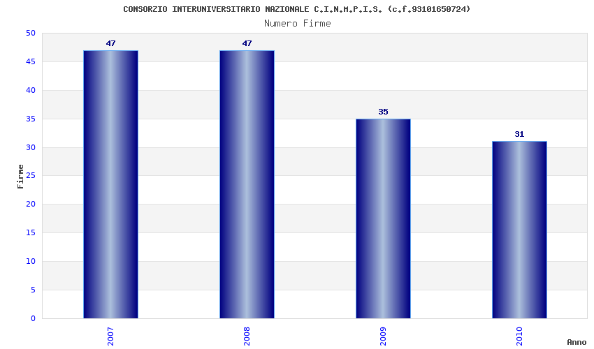 | Anno | Firme | Importi | Media | Naz. | Reg. | Prov. | Comu. |