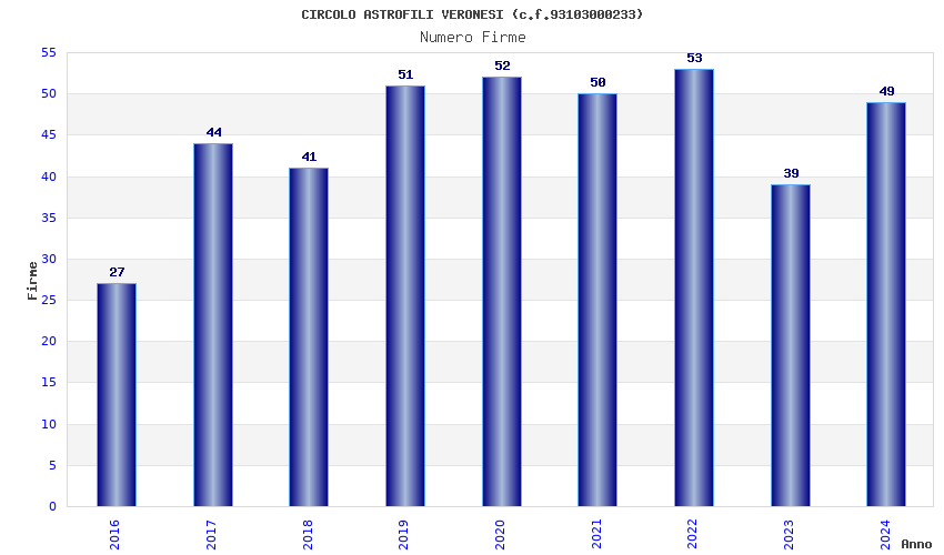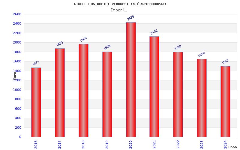 | Anno | Firme | Importi | Media | Naz. | Reg. | Prov. | Comu. |