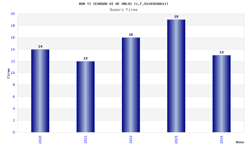 | Anno | Firme | Importi | Media | Naz. | Reg. | Prov. | Comu. |