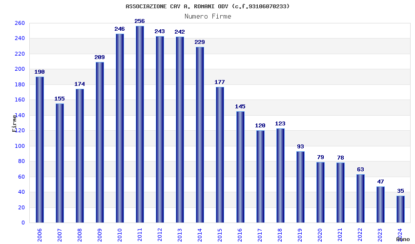 | Anno | Firme | Importi | Media | Naz. | Reg. | Prov. | Comu. |