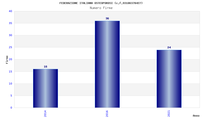 | Anno | Firme | Importi | Media | Naz. | Reg. | Prov. | Comu. |