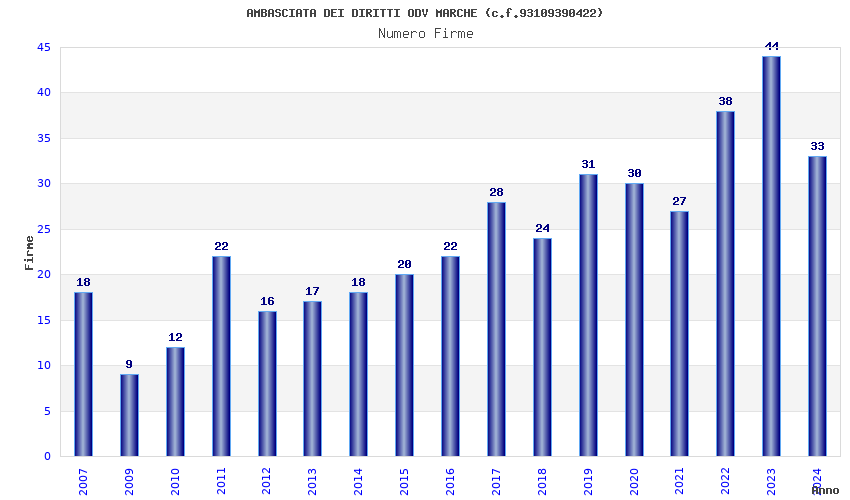 | 2023 | 44 | 1.003,42 | 22,81 | 36.193 | 898 | 347 | 109 |