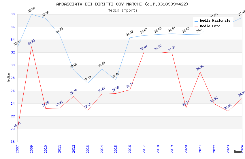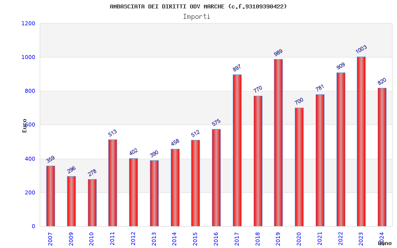 | Anno | Firme | Importi | Media | Naz. | Reg. | Prov. | Comu. |