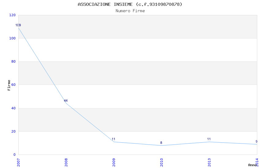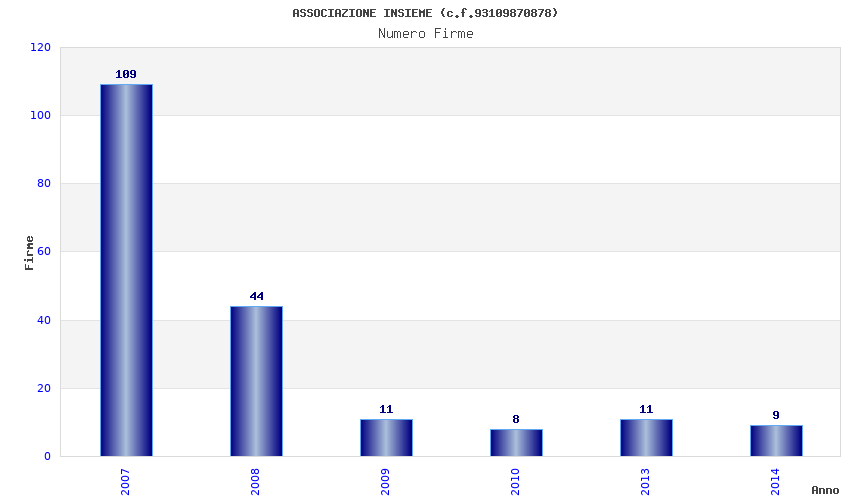 | Anno | Firme | Importi | Media | Naz. | Reg. | Prov. | Comu. |