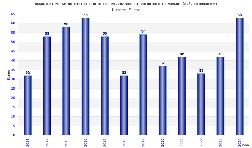 | Anno | Firme | Importi | Media | Naz. | Reg. | Prov. | Comu. |