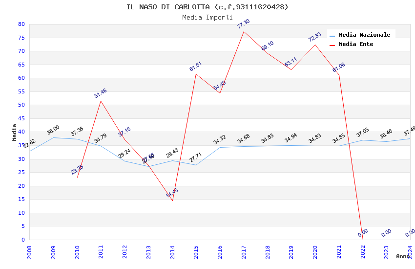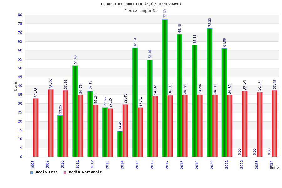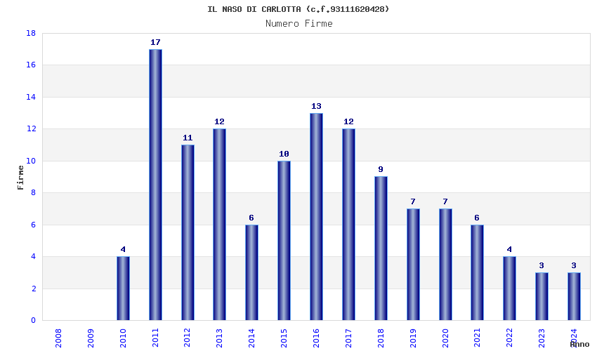 | Anno | Firme | Importi | Media | Naz. | Reg. | Prov. | Comu. |