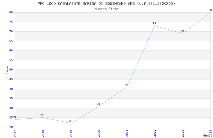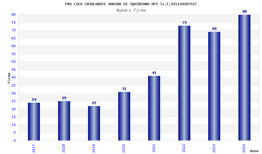 | 2024 | 80 | 1.847,59 | 23,09 | 25.513 | 1.365 | 257 | 4 |
