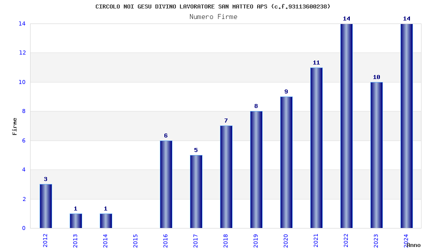 | Anno | Firme | Importi | Media | Naz. | Reg. | Prov. | Comu. |