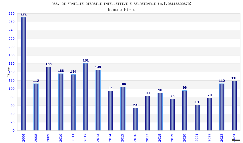 | Anno | Firme | Importi | Media | Naz. | Reg. | Prov. | Comu. |