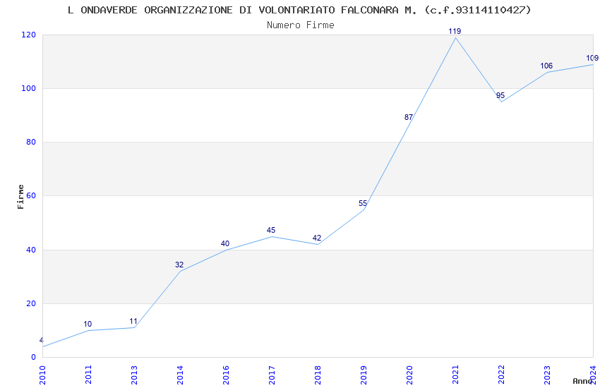 | 2021 | 119 | 3.320,94 | 27,91 | 16.117 | 393 | 165 | 10 |