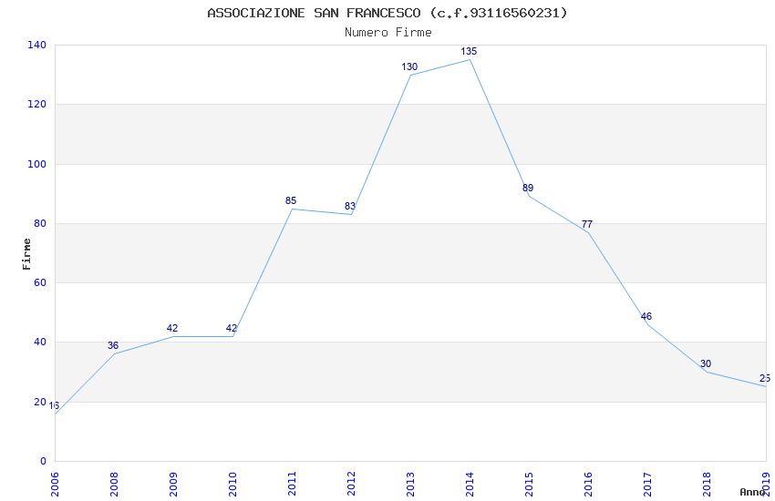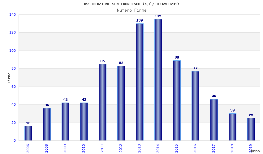 | Anno | Firme | Importi | Media | Naz. | Reg. | Prov. | Comu. |
