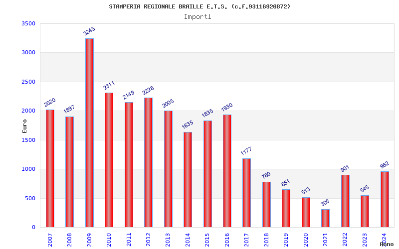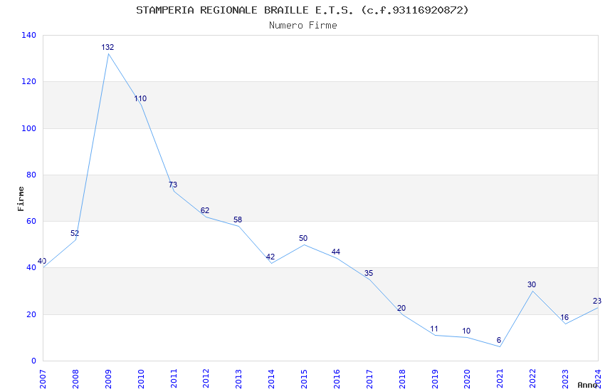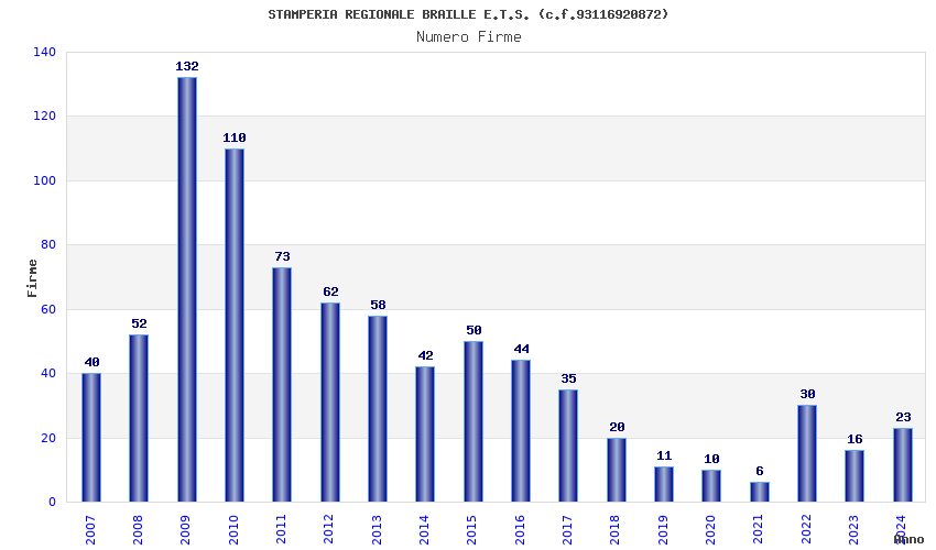 | Anno | Firme | Importi | Media | Naz. | Reg. | Prov. | Comu. |