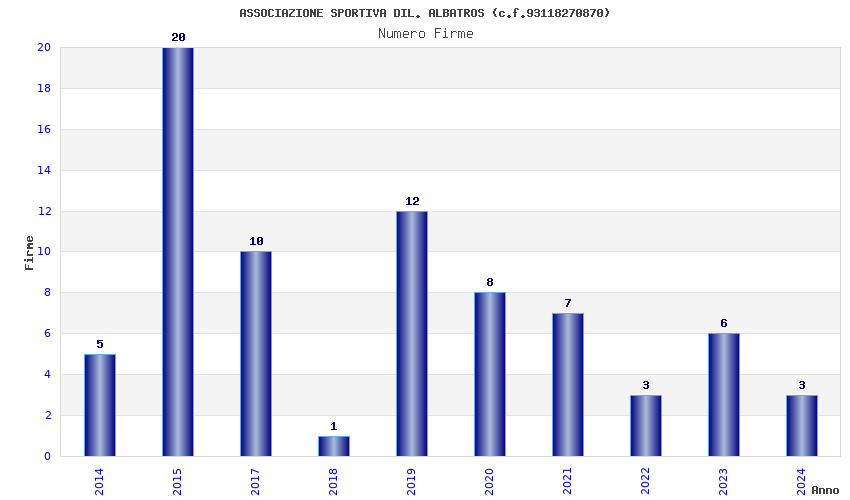 | Anno | Firme | Importi | Media | Naz. | Reg. | Prov. | Comu. |