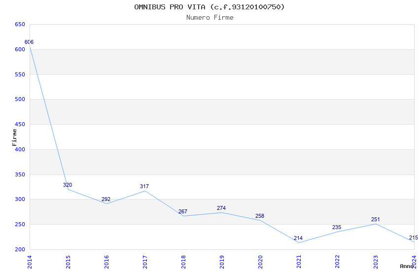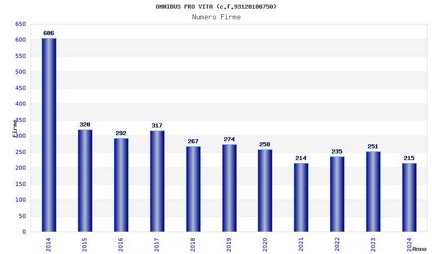 | Anno | Firme | Importi | Media | Naz. | Reg. | Prov. | Comu. |