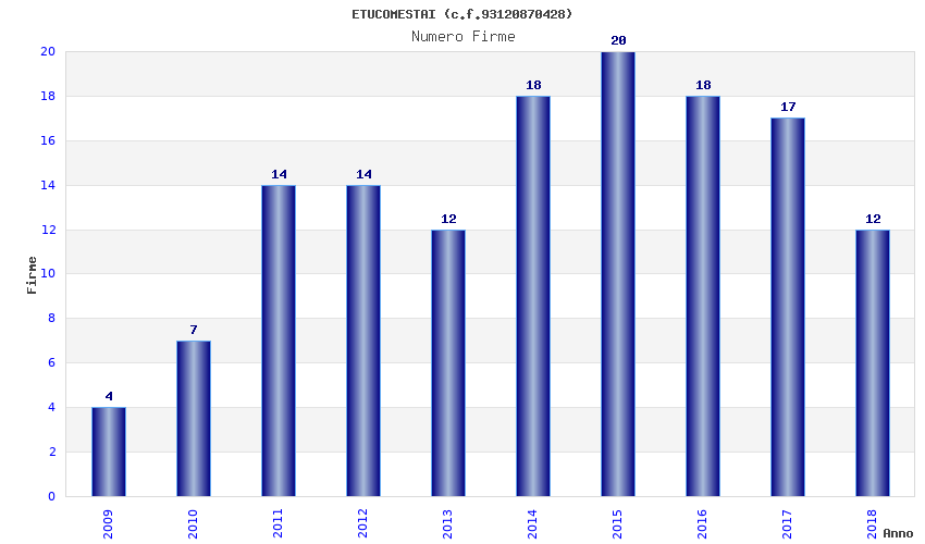 | Anno | Firme | Importi | Media | Naz. | Reg. | Prov. | Comu. |