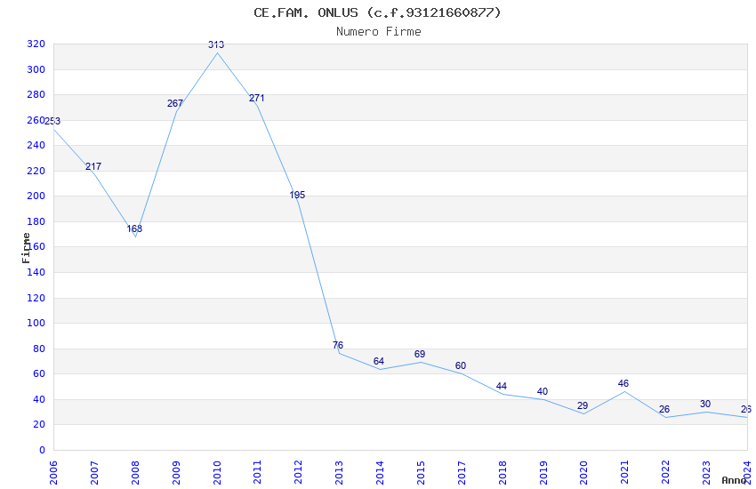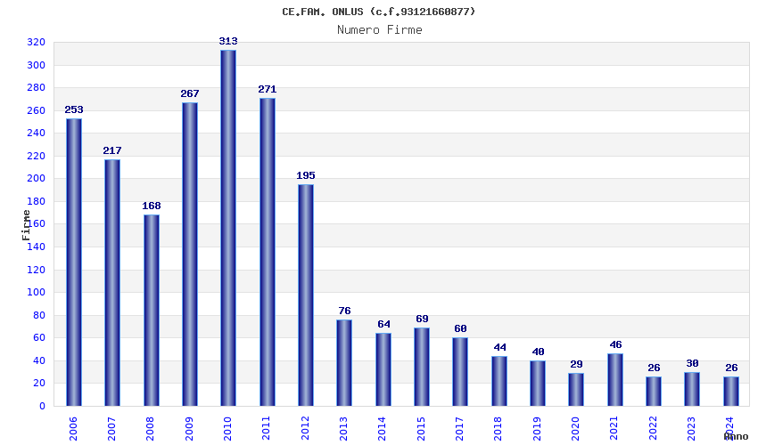 | Anno | Firme | Importi | Media | Naz. | Reg. | Prov. | Comu. |