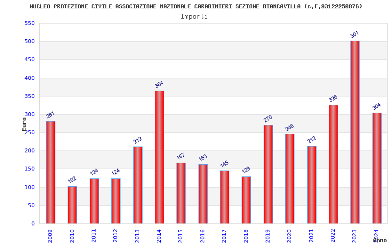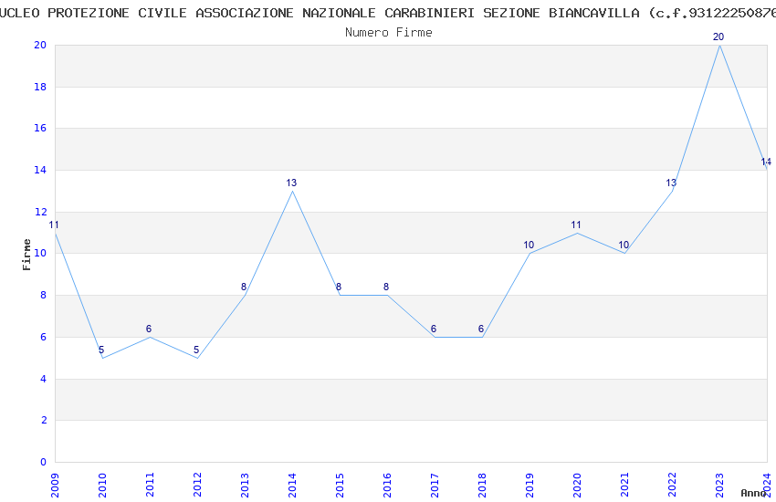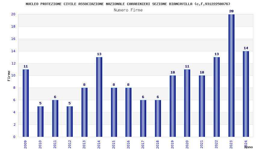 | Anno | Firme | Importi | Media | Naz. | Reg. | Prov. | Comu. |