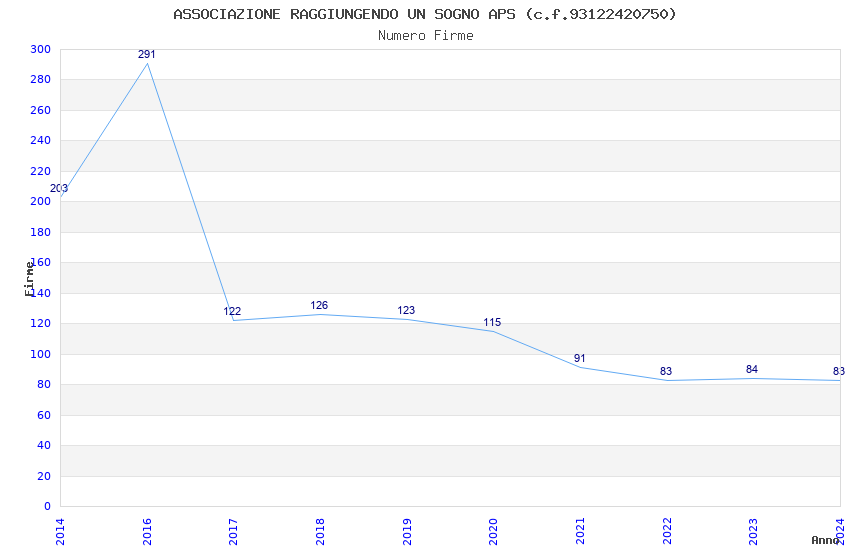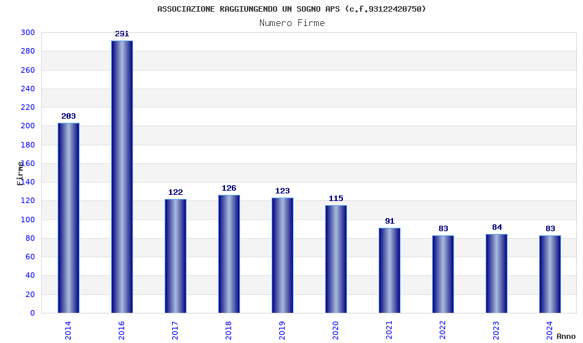 | Anno | Firme | Importi | Media | Naz. | Reg. | Prov. | Comu. |