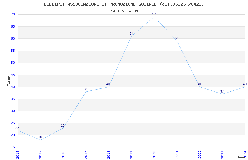 | 2022 | 40 | 887,77 | 22,19 | 36.706 | 952 | 363 | 29 |