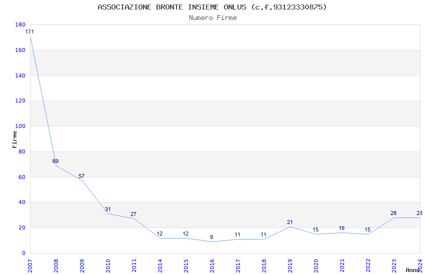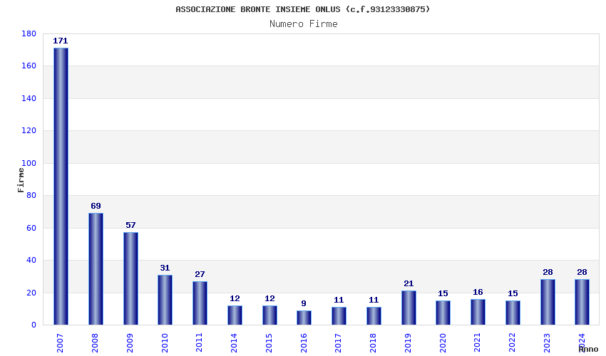 | Anno | Firme | Importi | Media | Naz. | Reg. | Prov. | Comu. |