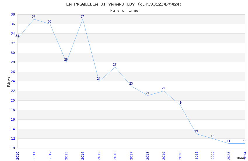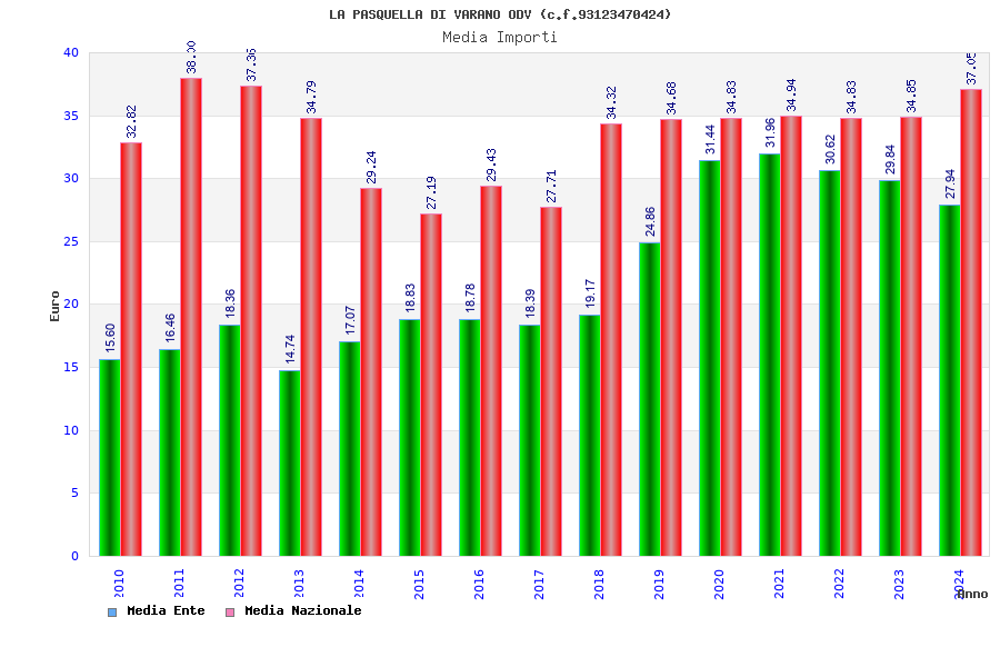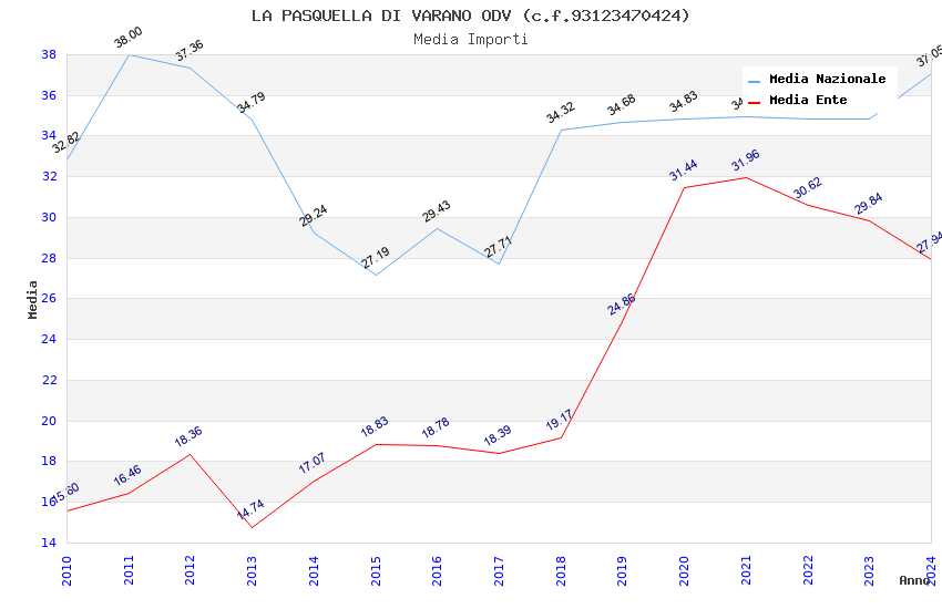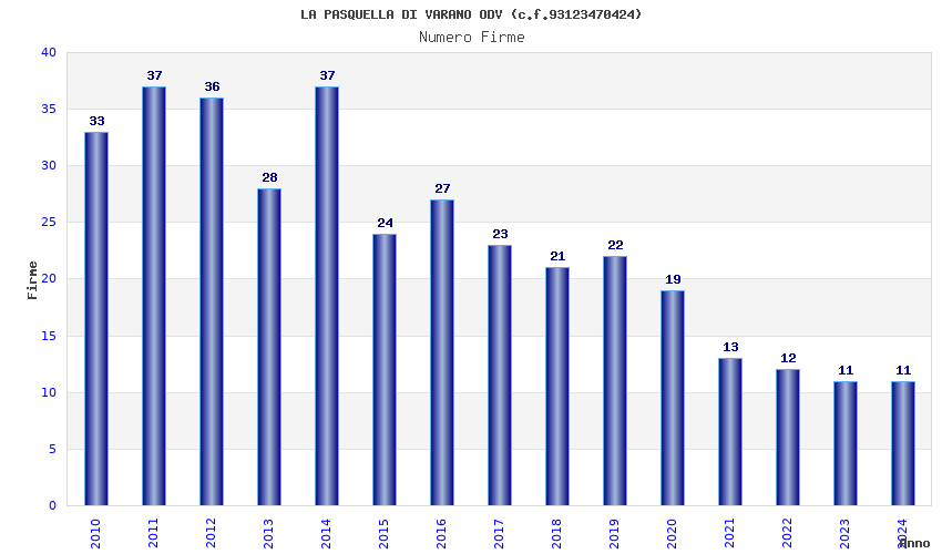 | Anno | Firme | Importi | Media | Naz. | Reg. | Prov. | Comu. |