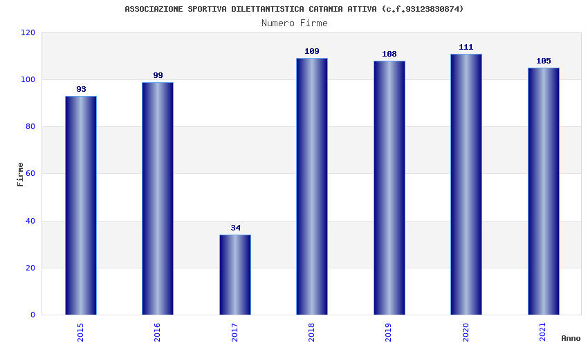 | Anno | Firme | Importi | Media | Naz. | Reg. | Prov. | Comu. |