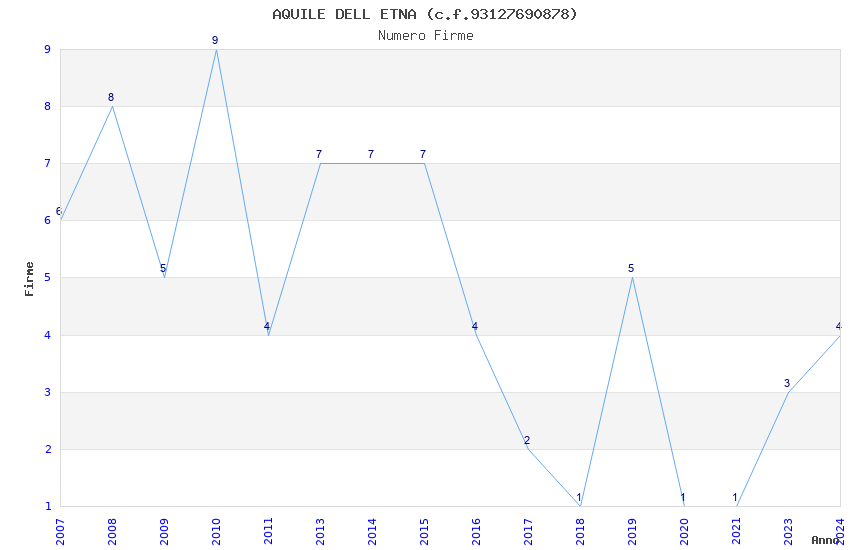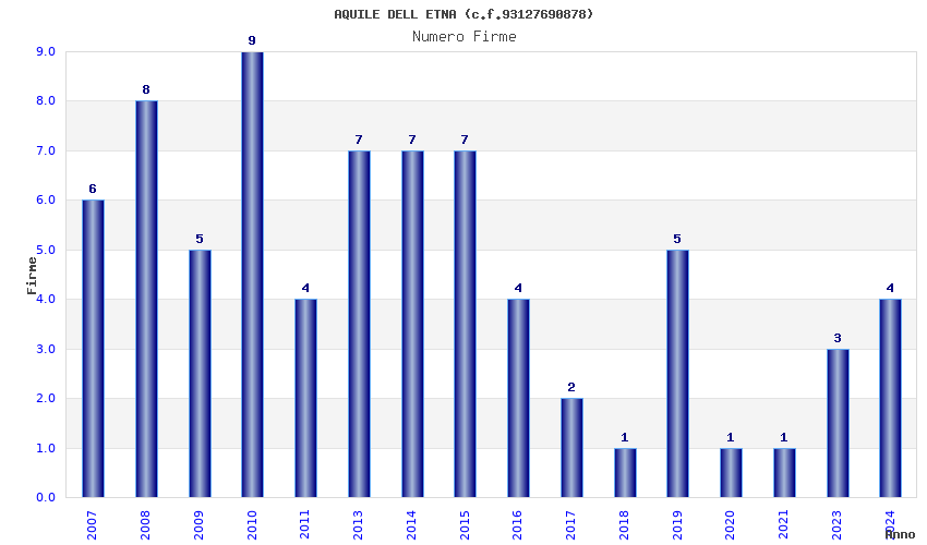 | Anno | Firme | Importi | Media | Naz. | Reg. | Prov. | Comu. |