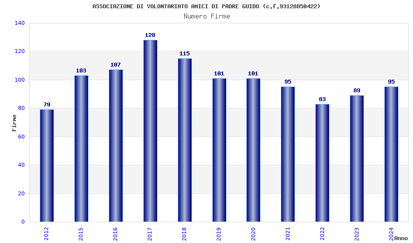 | Anno | Firme | Importi | Media | Naz. | Reg. | Prov. | Comu. |