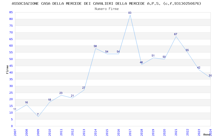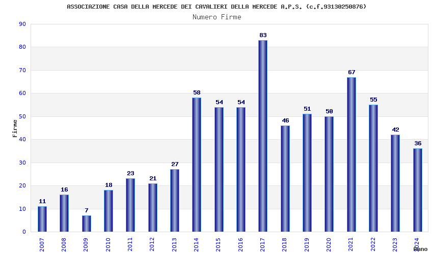 | 2017 | 83 | 3.064,20 | 36,92 | 17.256 | 1.020 | 209 | 91 |