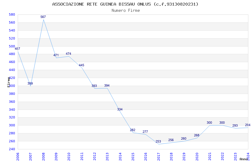 | 2023 | 293 | 9.670,82 | 33,01 | 5.224 | 465 | 106 | 2 |