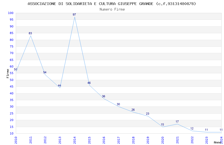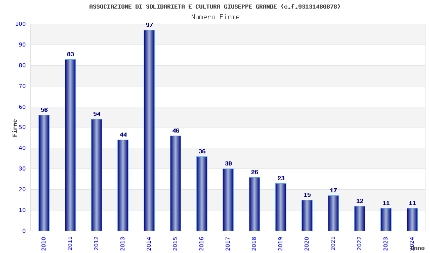| Anno | Firme | Importi | Media | Naz. | Reg. | Prov. | Comu. |
