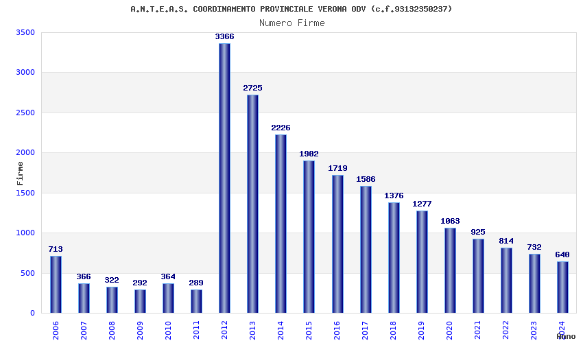 | Anno | Firme | Importi | Media | Naz. | Reg. | Prov. | Comu. |