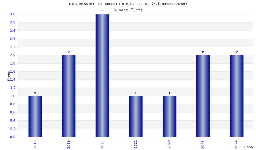 | Anno | Firme | Importi | Media | Naz. | Reg. | Prov. | Comu. |