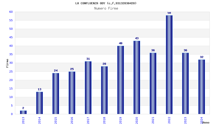 | Anno | Firme | Importi | Media | Naz. | Reg. | Prov. | Comu. |
