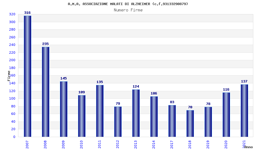 | Anno | Firme | Importi | Media | Naz. | Reg. | Prov. | Comu. |