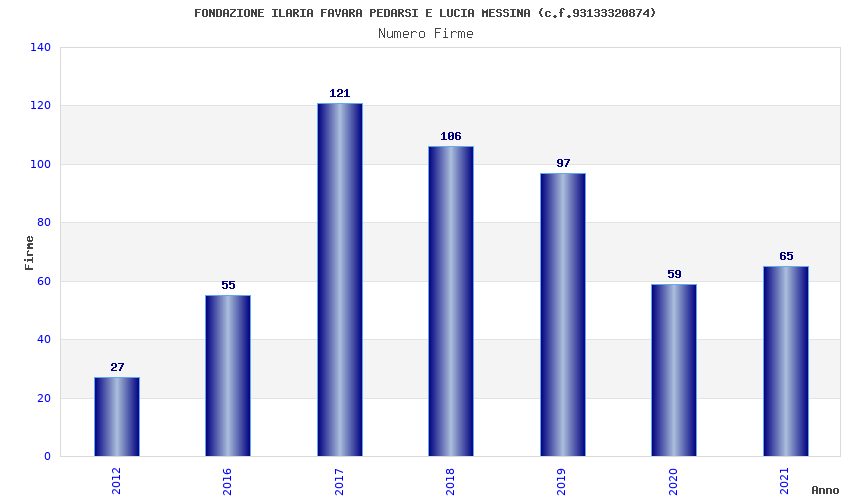 | Anno | Firme | Importi | Media | Naz. | Reg. | Prov. | Comu. |
