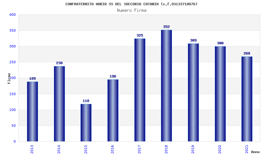 | Anno | Firme | Importi | Media | Naz. | Reg. | Prov. | Comu. |