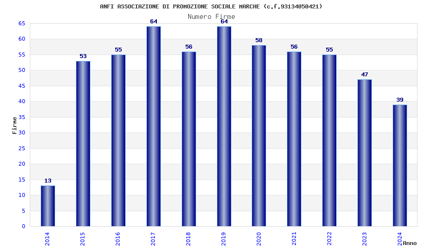 Anno Firme Importi Media Naz. Reg. Prov. Comu.