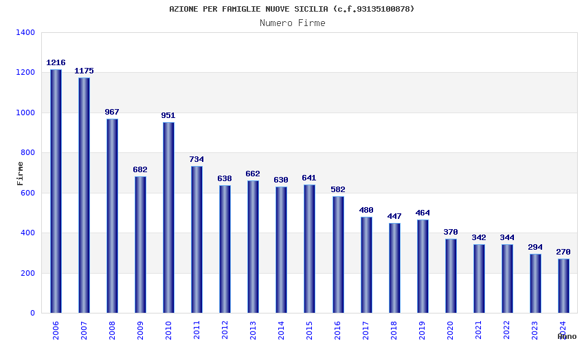 | Anno | Firme | Importi | Media | Naz. | Reg. | Prov. | Comu. |