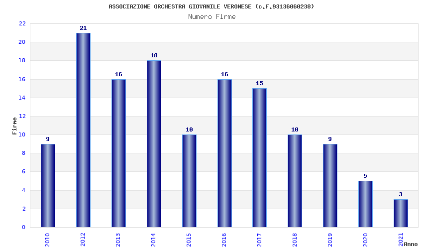 | Anno | Firme | Importi | Media | Naz. | Reg. | Prov. | Comu. |