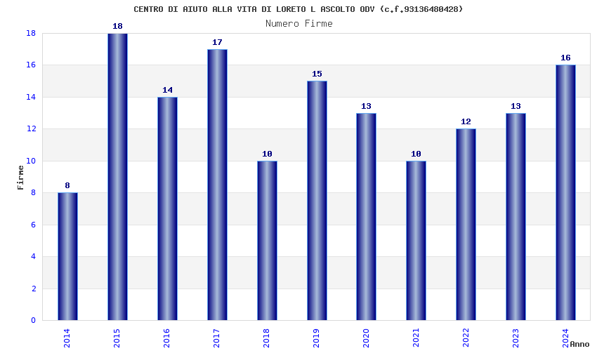 | Anno | Firme | Importi | Media | Naz. | Reg. | Prov. | Comu. |