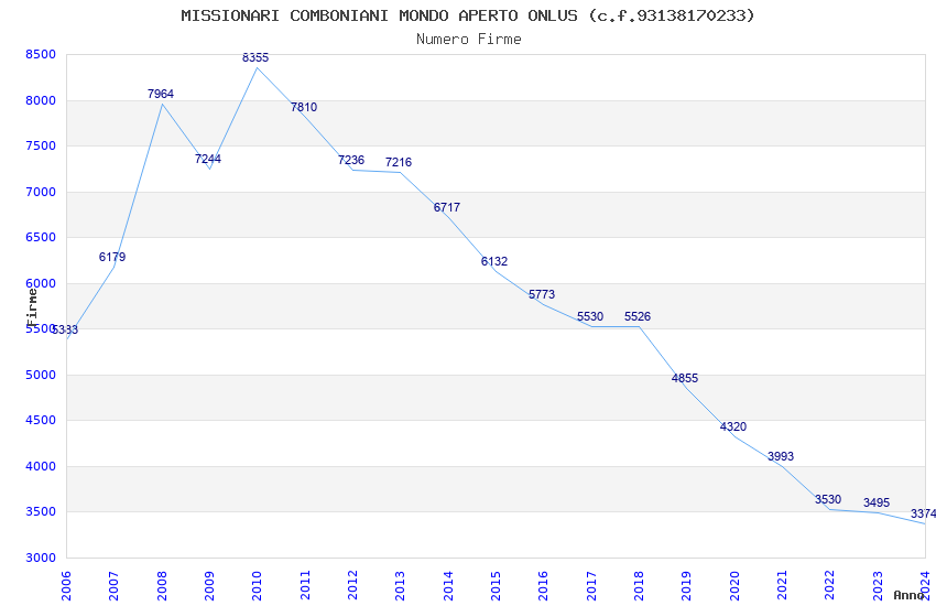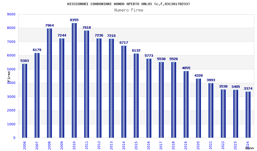 | Anno | Firme | Importi | Media | Naz. | Reg. | Prov. | Comu. |