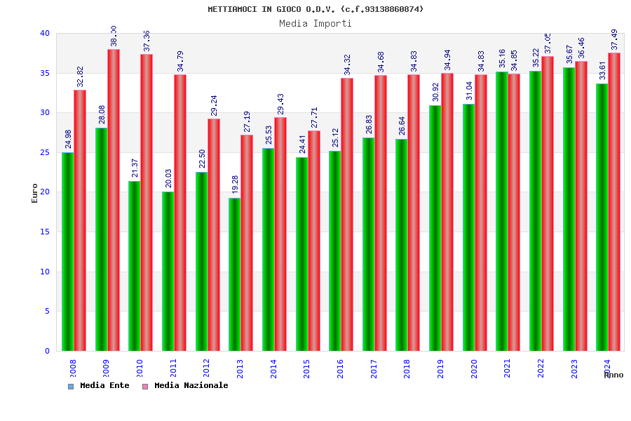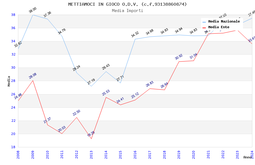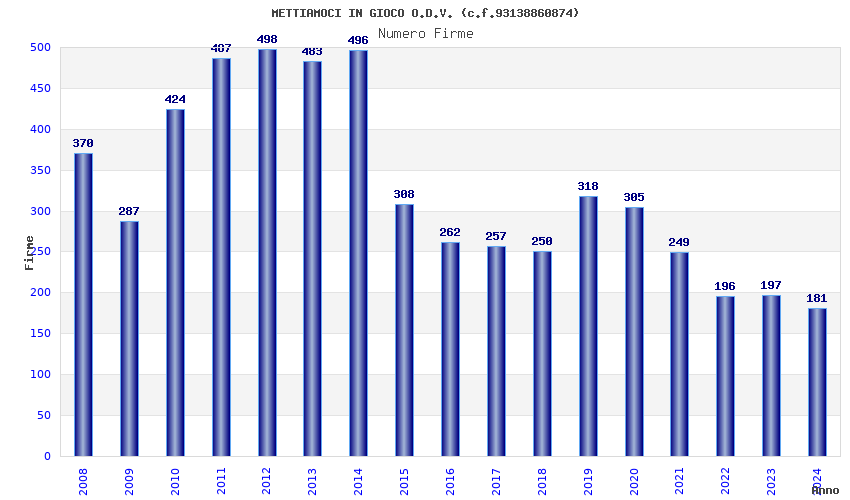 | Anno | Firme | Importi | Media | Naz. | Reg. | Prov. | Comu. |