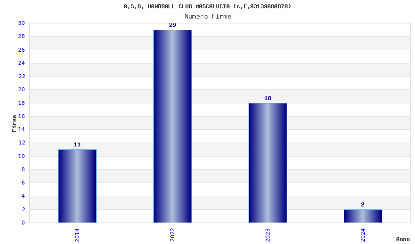| Anno | Firme | Importi | Media | Naz. | Reg. | Prov. | Comu. |