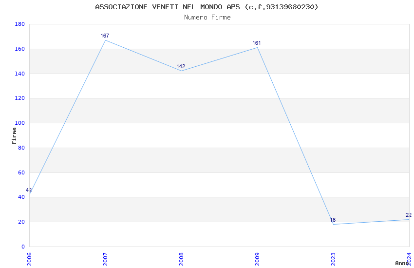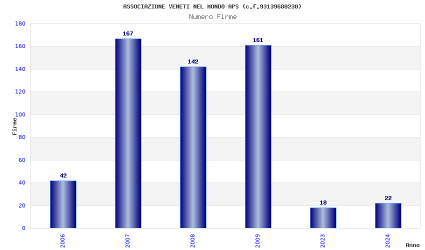 | Anno | Firme | Importi | Media | Naz. | Reg. | Prov. | Comu. |