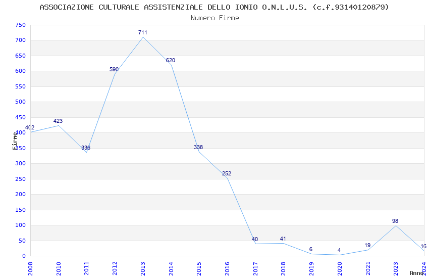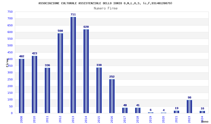 | Anno | Firme | Importi | Media | Naz. | Reg. | Prov. | Comu. |
