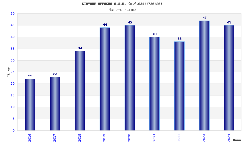 | Anno | Firme | Importi | Media | Naz. | Reg. | Prov. | Comu. |