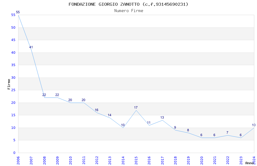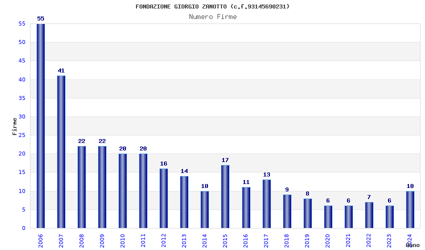 | Anno | Firme | Importi | Media | Naz. | Reg. | Prov. | Comu. |