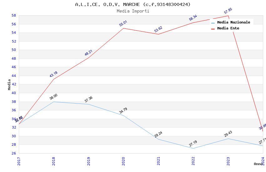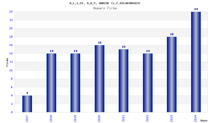 | Anno | Firme | Importi | Media | Naz. | Reg. | Prov. | Comu. |